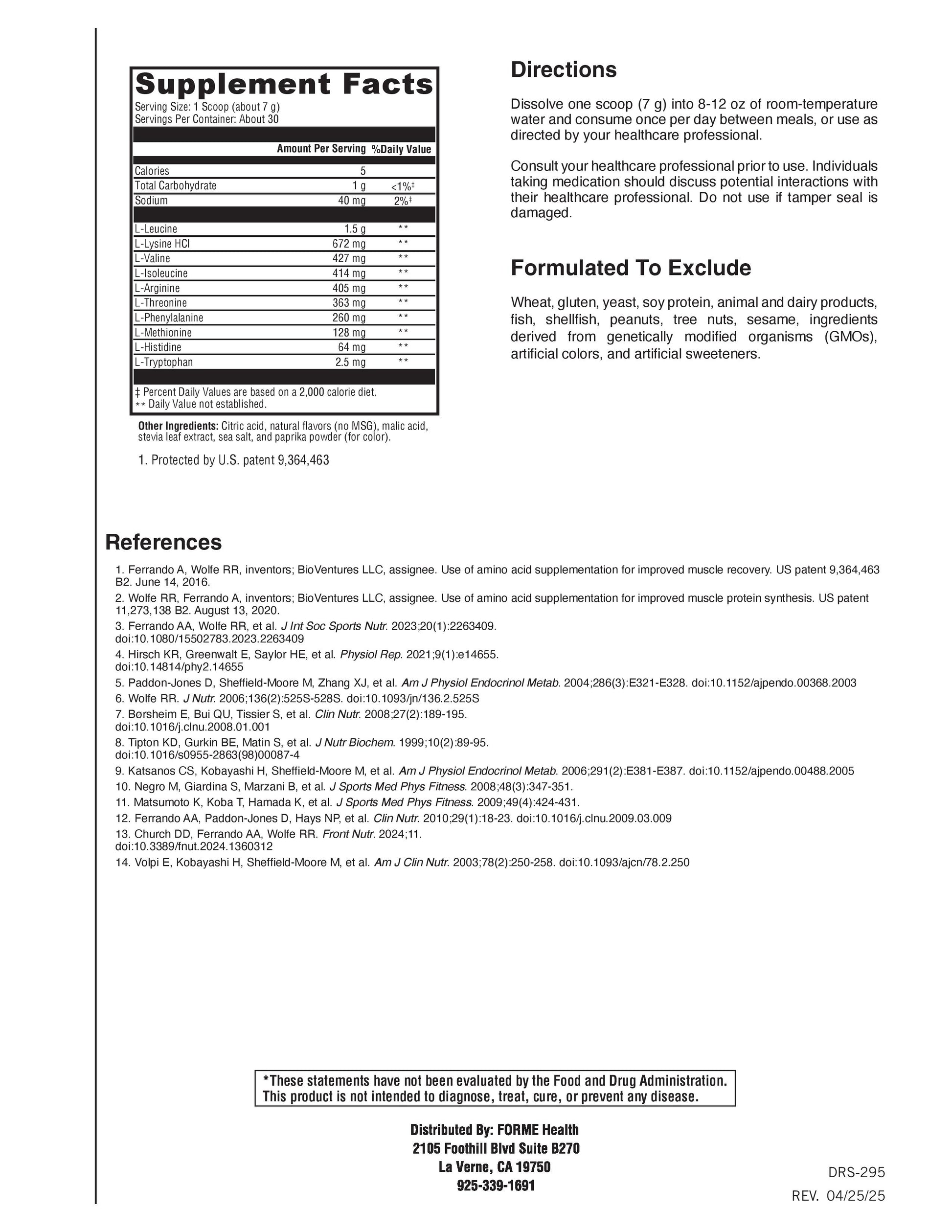 Low in calories, free of artificial sweeteners, and rapidly absorbed with no digestive load, FORME AMINOS is ideal for daily use by both active and aging individuals seeking to optimize hydration and muscle repair.